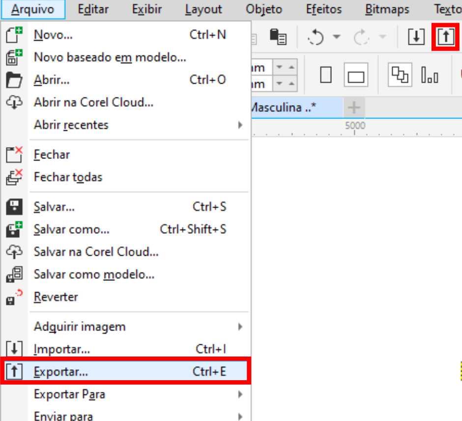 Clique em ARQUIVO >> EXPORTAR (Ctrl + E)